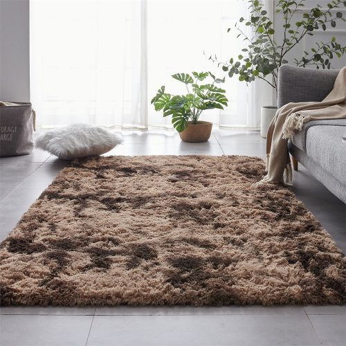 Shag Area Rug, 4’x6′ Tie-Dyed Coffee Living Room Rug